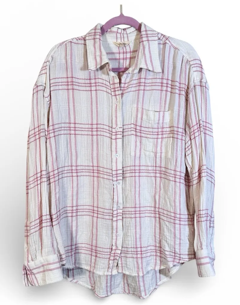 Faherty White Pink Plaid Organic Cotton Button Down Shirt Womens L Natural Fiber Size L - $68 - From Lisa