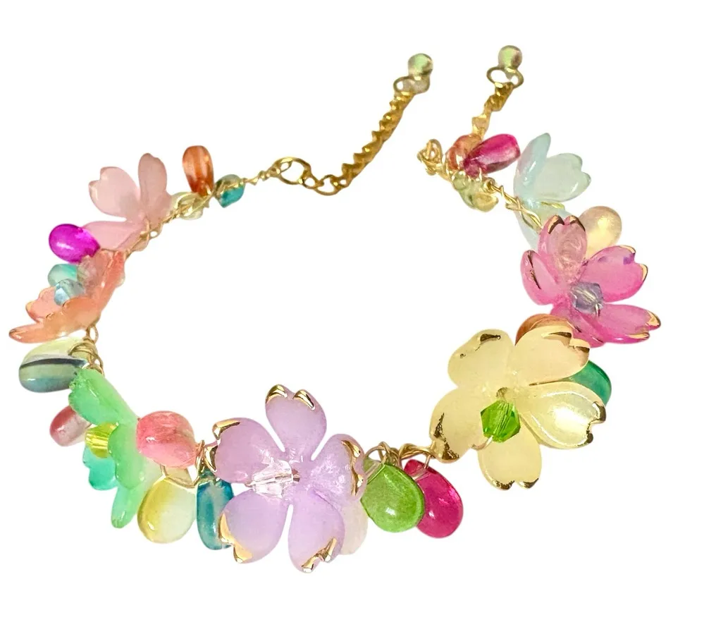Fairy Bracelet with Tear Drop Crystals and Lucite Flowers with Swarovski Centers Pink - $62 New With Tags - From Meredith