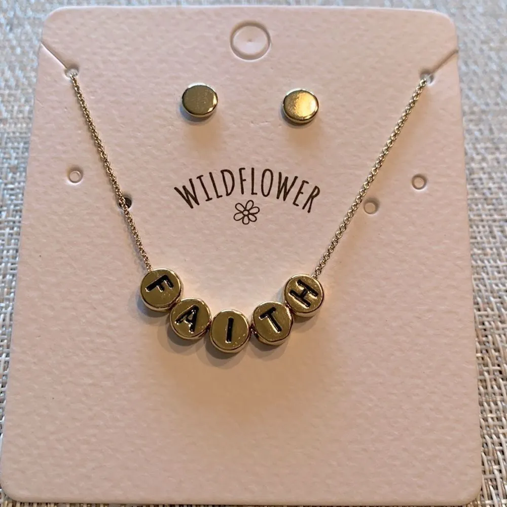 Faith Necklace and Earrings Set gold color - $17 New With Tags - From Veronica