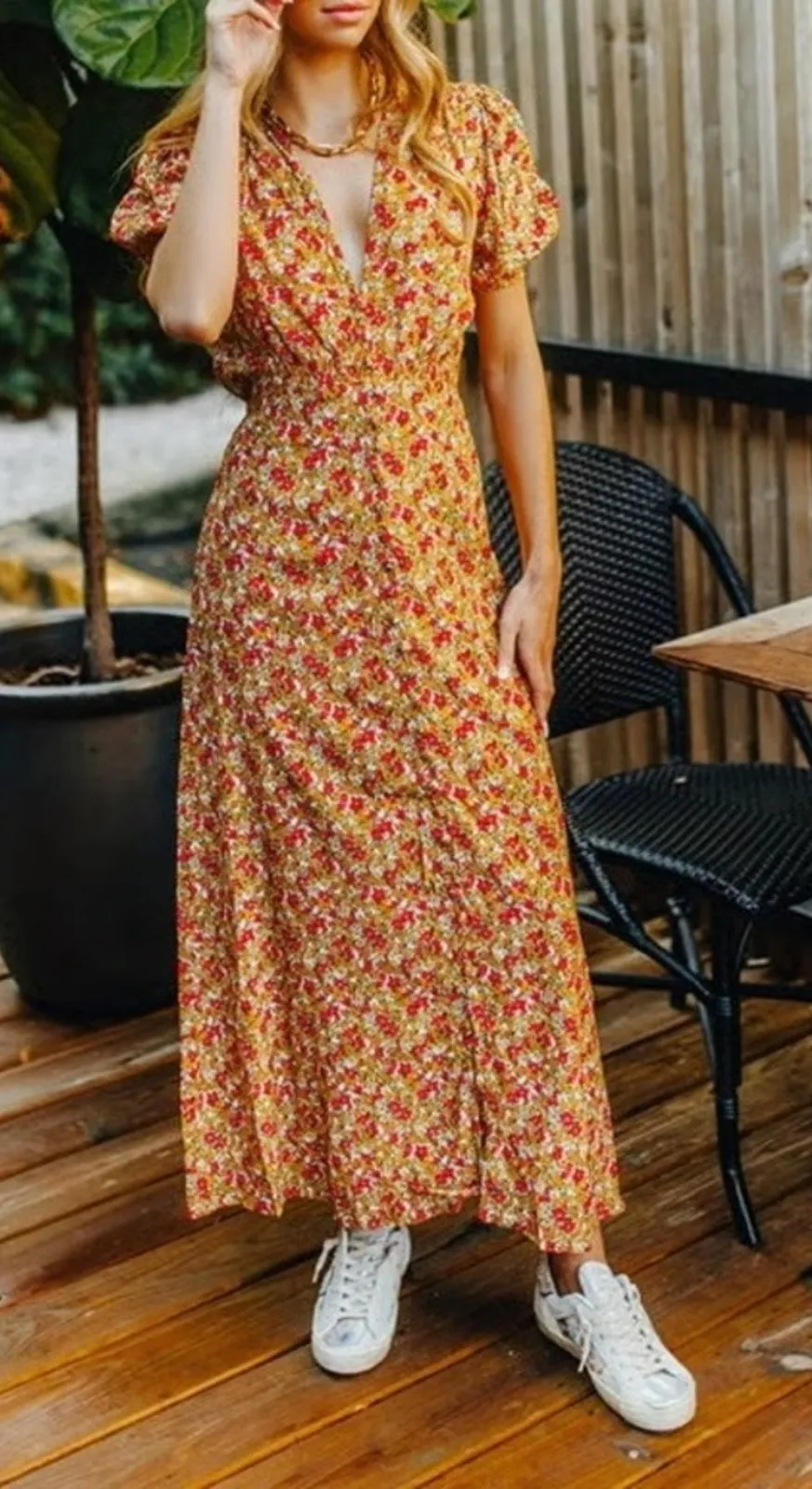 DESCRIPTION Cut from rayon crepe with a cheerful floral print, the Bellavista midi dress features a V-neckline, fixed waistband with self-fabric waist ties, feminine center front split and finished with a floaty A-line skirt. Reasonable offers welcomed ✨ CONDITION Gently used, in good condition. No stains/tears. MATERIAL 100% Rayon Crepe MEASUREMENTS Bust - 20” Waist - 15” Length - 53” (Please note: all measurements are approximate. Taken flat across the article of clothing)