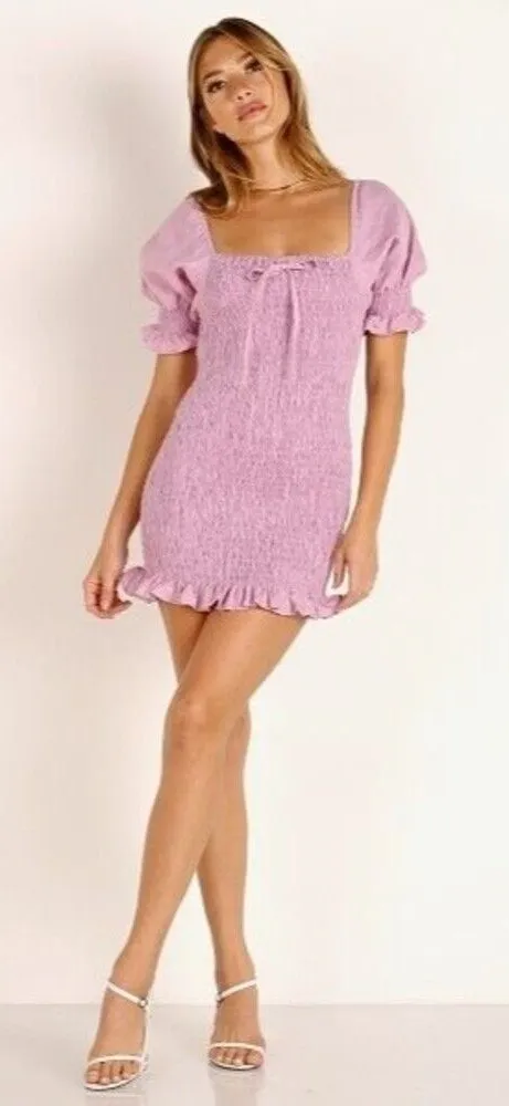 Faithful the Brand Annibelis Linen Mini Dress Puff Sleeves Front Tie Size Small Great pre-owned con... Show more