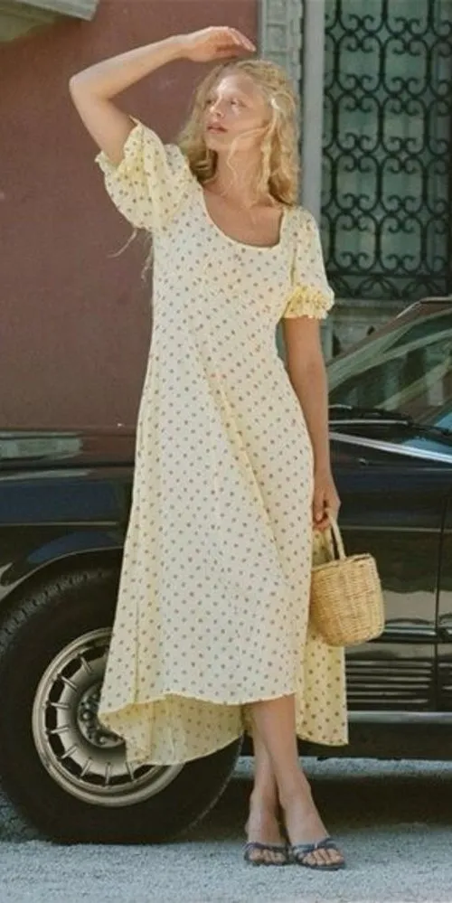 100% rayon Hand wash cold Unlined Hidden back zipper closure and attached waist tie Puff sleeve with... Show more