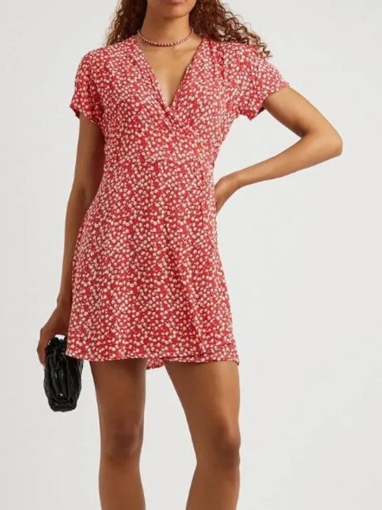 This is a gently used Faithfull the Brand Louella Floral Print Wrap Dress Red Size 4. In excellent c... Show more