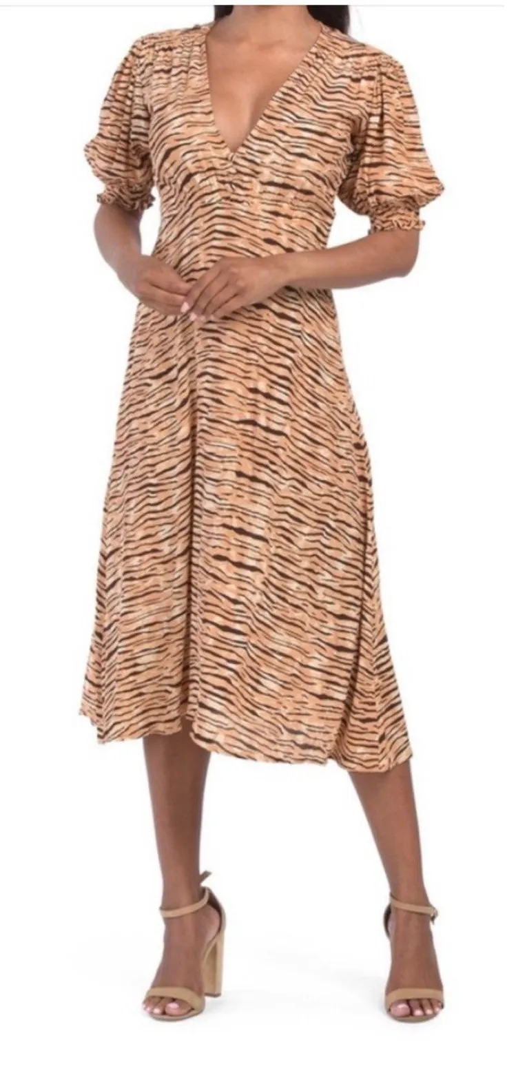 $200 Faithfull the Brand Marie Louise Midi Dress Medium Wyldie Tiger Zebra Animal Print Excellent c... Show more