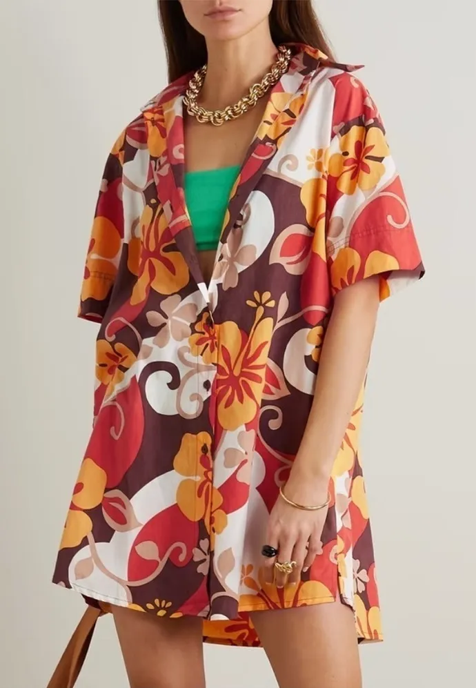 This bold floral “Tropicana” shirt dress from Faithfull the Brand is new with tags! US size 2 100% cotton Short sleeves Button front Collared Oversized Wear it alone, with shorts, or over a swimsuit This item is new - no holes or stains and it is from a smoke free home Laying flat armpit to armpit measures approximately 18 1/2” Center back length is approximately 32 1/2” from the collar seam to the hem