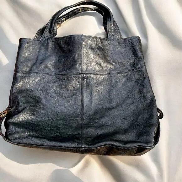 Discover the elegance of the Falor Italia Le Borse shoulder bag, crafted from luxurious black leather. The spacious main compartment and secure zipper pocket provide ample room for all your essentials, making it perfect for casual outings. Embossed detailing adds a touch of sophistication, while the sleek black metal hardware complements the overall design. This pre-owned bag is in excellent condition, ready to accompany you on your daily adventures. Brand: Falor Italia Le Borse Exterior material: Leather Style: Shoulder Bag Exterior color: Black Department: Women Features: Adjustable shoulder strap, Spacious main compartment, Secure zipper pocket Measures 14x15x4 Hardware color: Black Accents: Embossed detailing Closure: Zipper Occasion: Casual Hardware material: Metal