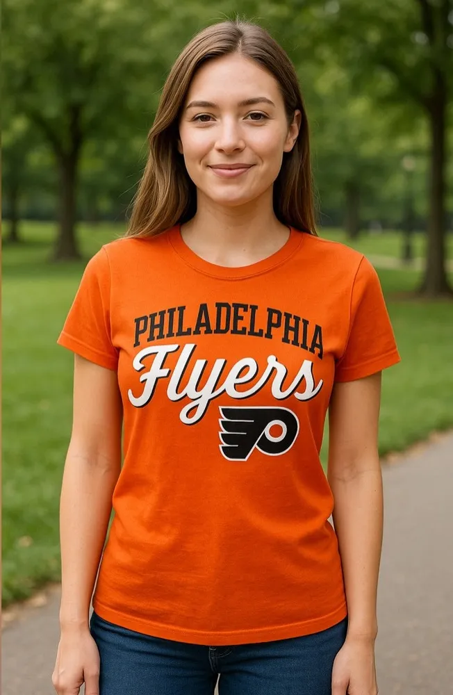 Show off your team pride in this classic Philadelphia Flyers T-shirt by Fanatics. Designed in the team’s signature bright orange with bold “Philadelphia Flyers” lettering and the official logo across the chest, this top combines sporty energy with timeless casual style. The soft cotton blend and flattering women’s fit make it perfect for game day, outdoor events, or everyday streetwear. Key Features: • Brand: Fanatics • Team: Philadelphia Flyers (NHL) • Size: Women’s (check tag for accurate sizing) • Color: Orange with white and black graphic print • Crew neckline, short sleeves, soft jersey knit • Casual, athletic, and preppy streetwear style Sportswear, Athleisure, Preppy, Normcore, Fan Gear, Baseballcore, Outdoor, Streetwear, Game Day, Casual Philadelphia Flyers women’s shirt, Fanatics Flyers orange tee, NHL team shirt, women’s hockey fan gear, sports casual top, preppy game day outfit #PhiladelphiaFlyers #Fanatics #NHLStyle #GameDayFit #Sportswear #PreppyCasual #NormcoreStyle #Athleisure #HockeyLife #FlyersNation