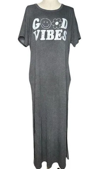 Fantastic Fawn GOOD VIBES Loose Fit Gray T-Shirt Maxi Dress with Pockets Great Condition! Photos sh... Show more