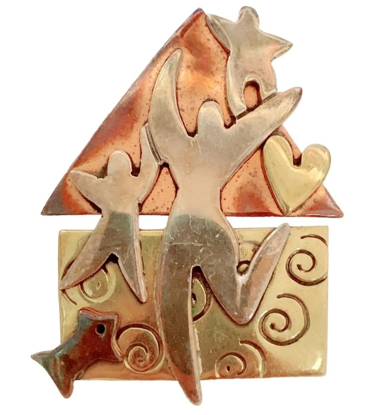 Far Fetched Happy Family Home Coppertone Goldtone Pin Brooch Silver - $13 - From Jenns