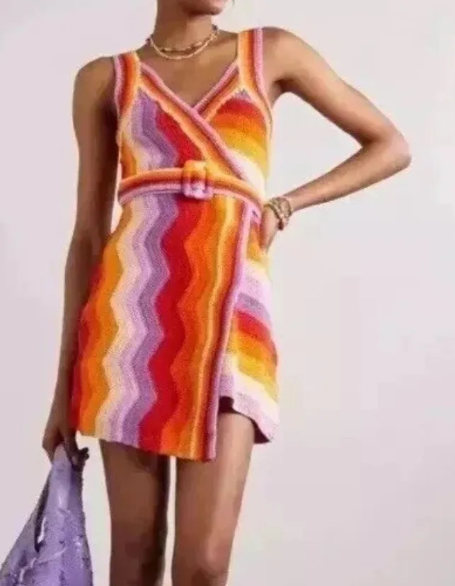 Farm Rio Anthropologie Crochet Mini Wrap Dress Belt Small New NWT Orange Purple - $250 New With Tags - From K