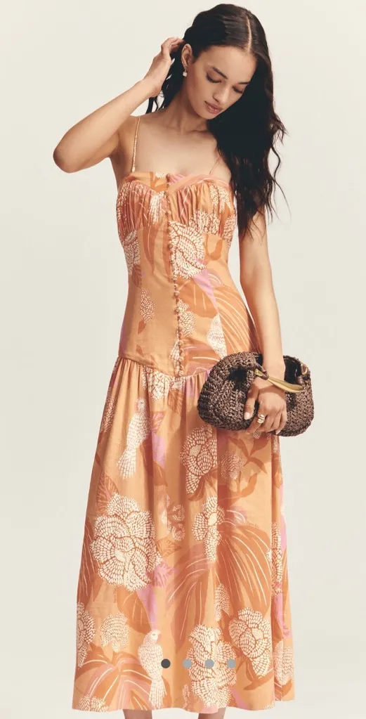 New with tag, size M • Only at Anthropologie • 55% linen, 45% viscose • Drop-waist silhouette • Strapless neckline • Fitted bodice • Zipper styling • Machine wash Smoke free and pet free home