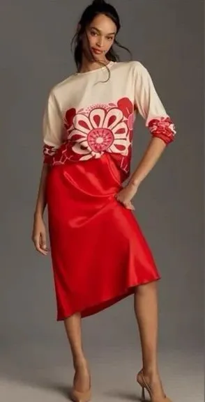 Chic oversized sweatshirt from Farm Rio with bold floral design. Features red pink and cream hues. Perfect for your next Valentines Day or casual outings. Good preowned condition with no holes or stains and smoke free. Farm Rio size M 21.5 inches pit to pit 19 inches shoulder to shoulder 26 inches long #farmrio #anthropologie #floral #valentinesday #love #stretchy #slouchy #bohemian #indiesleeze #grunge #softgirl #comfy #casual #lounge #newpreppy #funky #bold #graphic #cozy