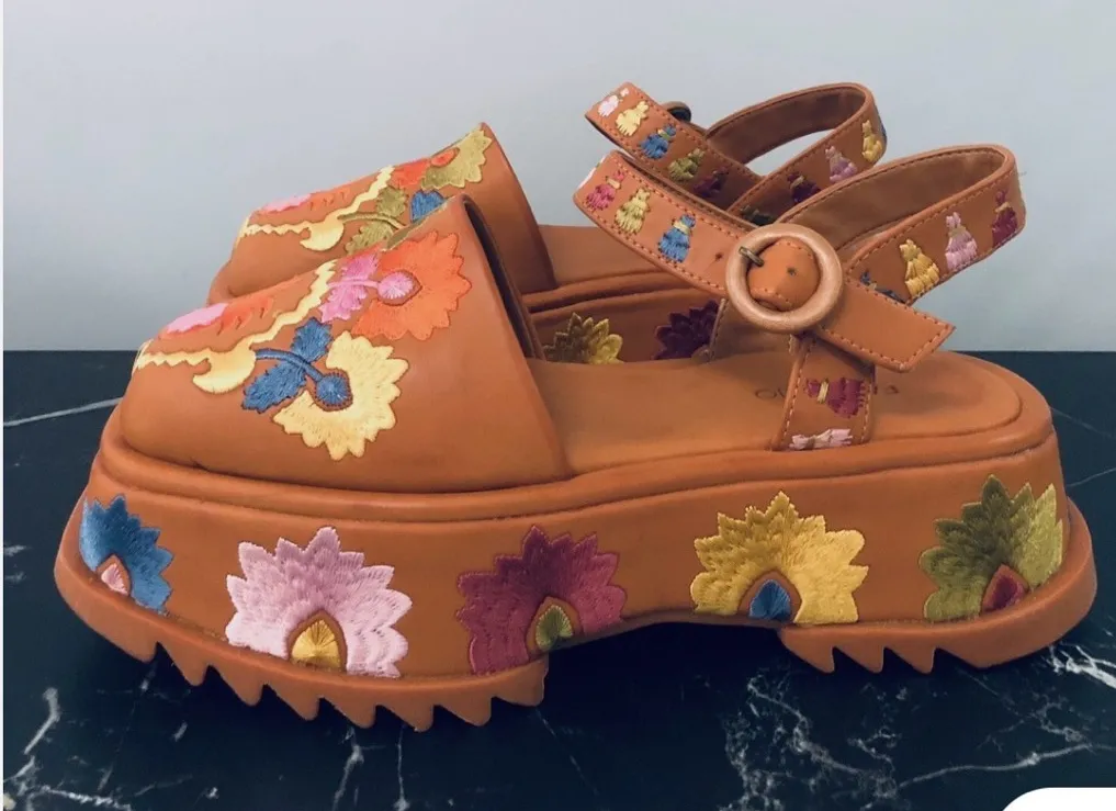 FARM RIO Antwerp Closed Toe Floral Embroidered Platform Sandals *US Size 8 Orange - $125 - From JILL