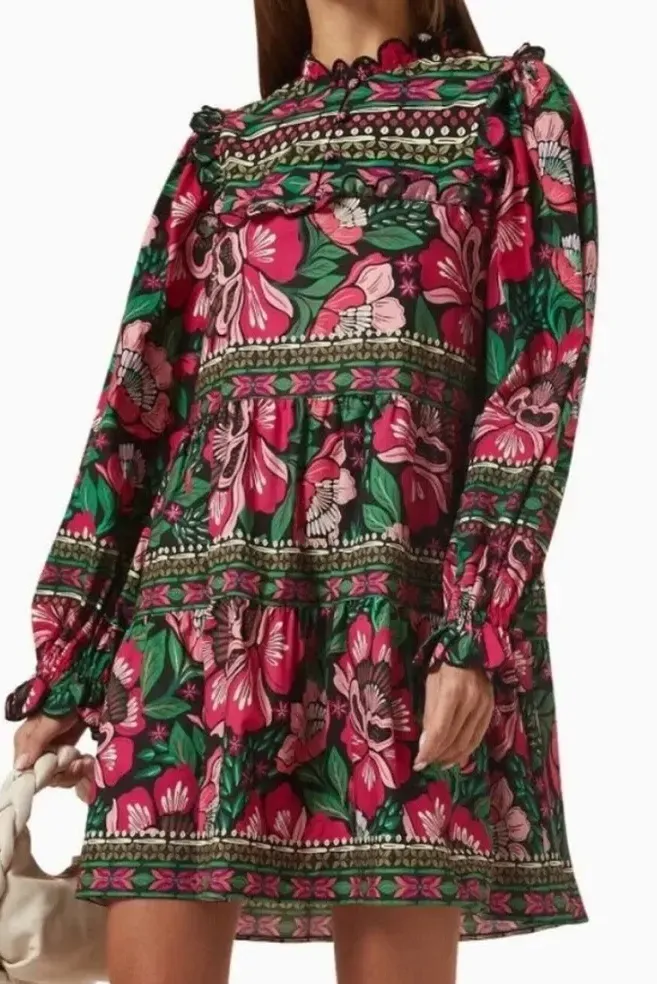 Farm Rio Dress Mini Floral Black Flower Garden Cotton Pink Swing Resort spring Size XS - $82 - From Sassia