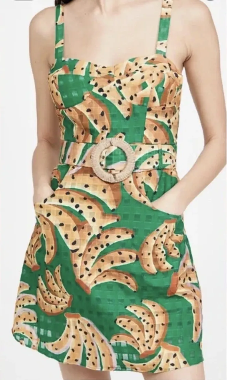 FARM RIO LINEN MINI DRESS- NWOT GREEN/YELLOW BANANA PRINT This dress is in excellent condition. Ne... Show more