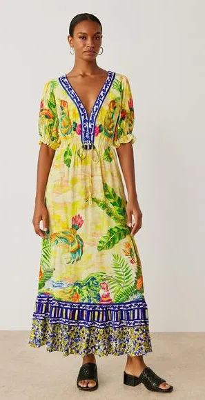 Anthropologie Farm Rio Tropical Floral V-Neck Puff-Sleeve Resort Wear Maxi Dress - Great condition, see all pictures! Measurements Laying Flat!! Size - S Armpit to Armpit - 22" Waist - 18" Length - 55" Hips - 22" All items from a pet and Smoke Free Home Sellers Note • 1225-G *All Items have been cleaned/ steamed per eBay standards. This Farm Rio V-Neck Puff-Sleeve Dress is just what your holiday suitcase has been missing. Perfect for day-to-night dressing, this printed dress will be a true showstopper in your portfolio. Made with 100% viscose, this pretty dress is decorated with an all-over tropical print. It has a V-neckline, puff sleeves, drawstring waist, midi length, and zip fastening for closure. Wear it with a pair of chic raffia sandals, gold hoop earrings, and a woven bag to create the ultimate summer-ready look.