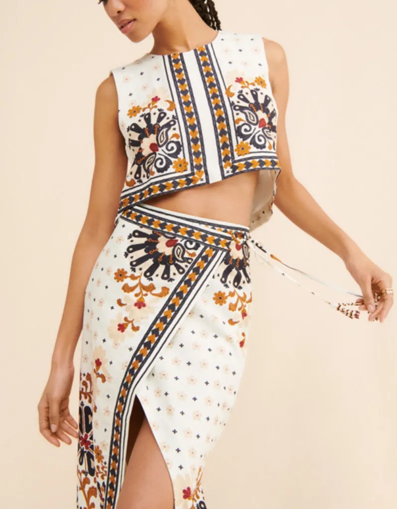 Farm Rio Flower Fan Tapestry Off White Cropped Top and Wrap Skirt Blue Size XS - $199 - From Sarah