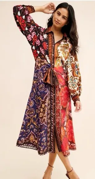 FARM Rio Miranda Mix Chemise Mix Print Midi Dress Size XS Orange - $100 - From Emmas