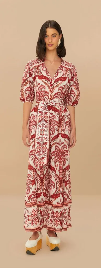 Step into a world of tropical elegance with the Off-White Tropical Cameo Belted Maxi Dress by FARM R... Show more