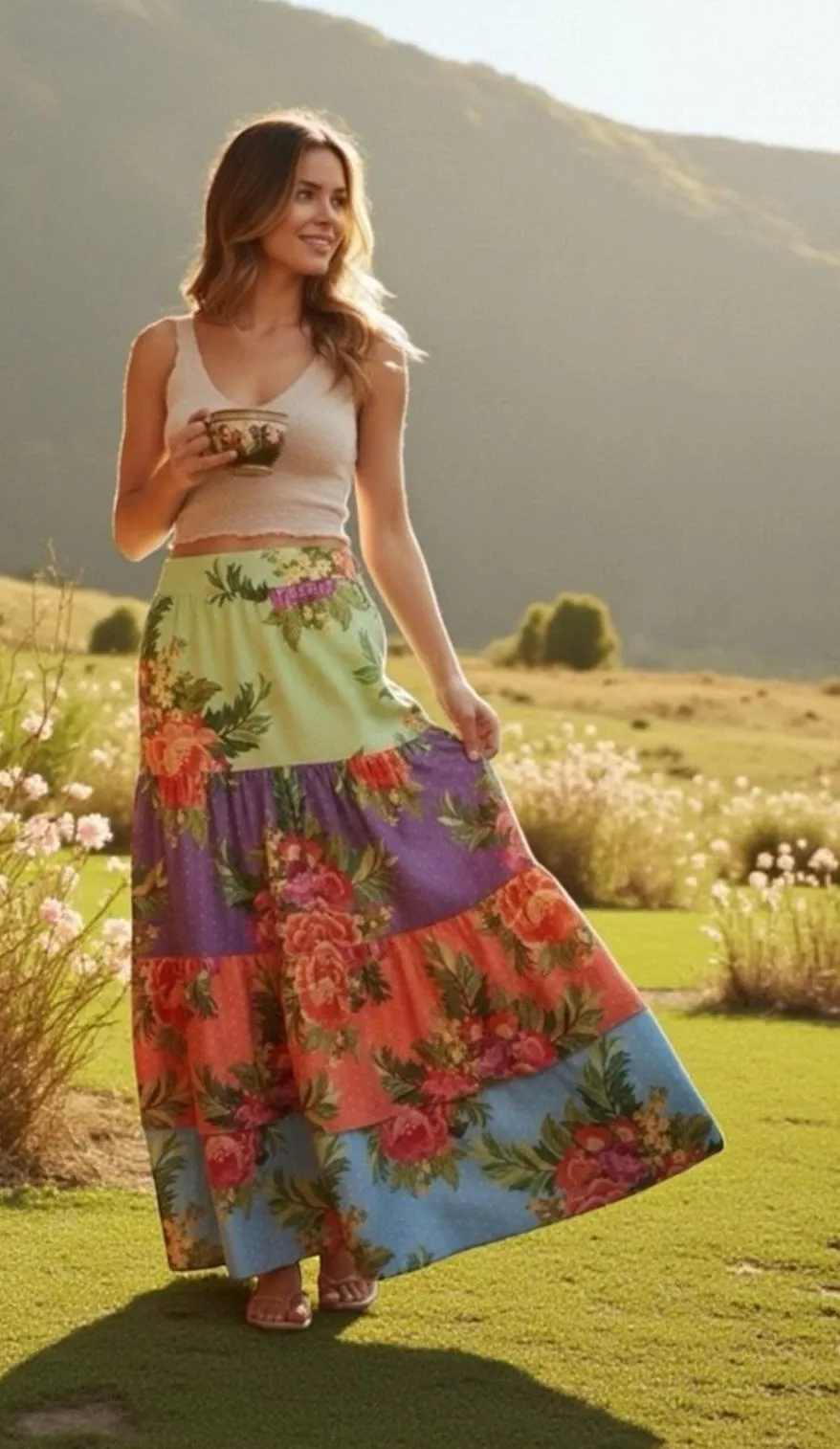 Farm Rio x Anthropologie Tiered Floral Maxi Skirt MSRP $148 Size Large Laying Flat / Approximate... Show more