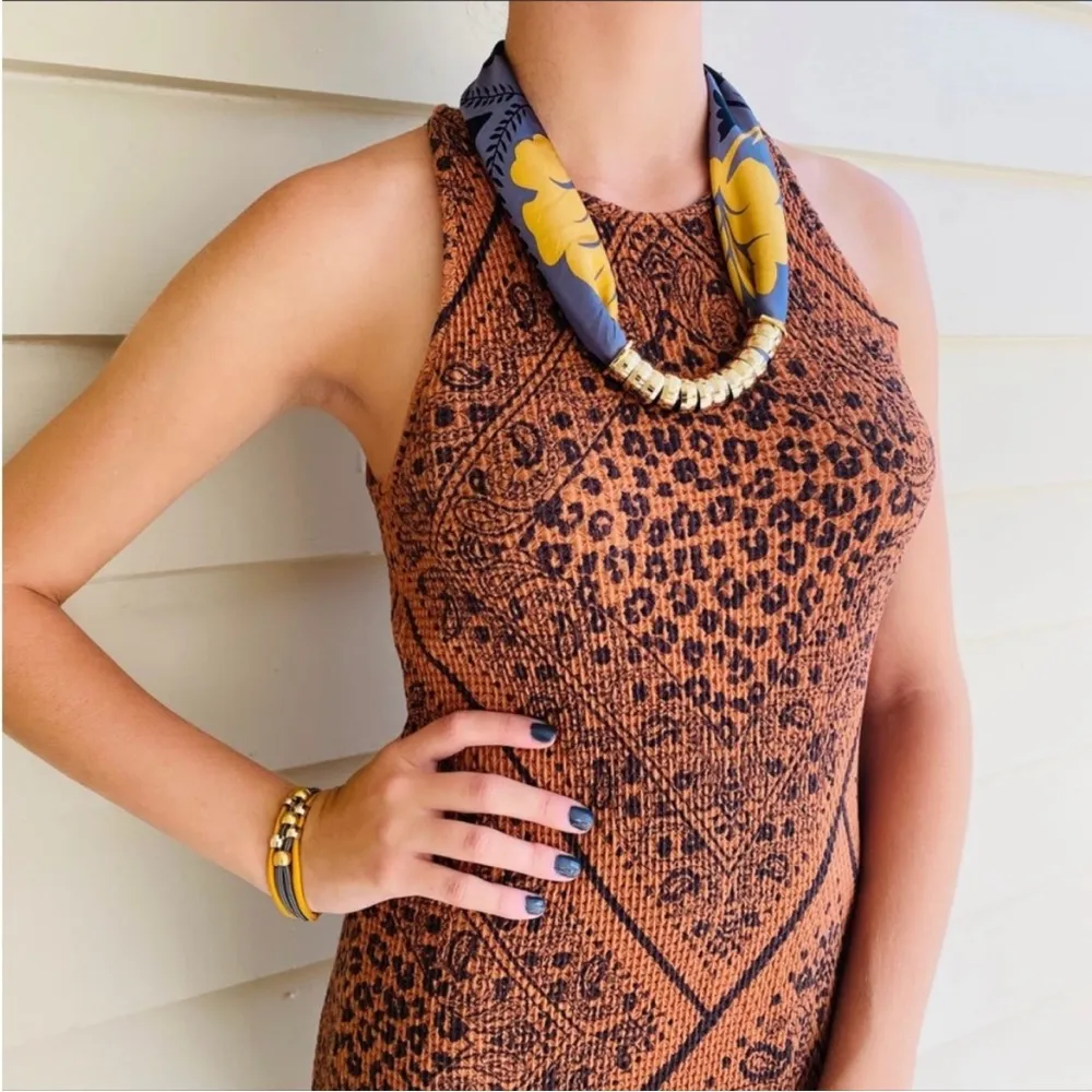 • Viscose, elastane • Midi silhouette • Back button • Pullover styling • Machine wash • Imported Approximate measurements, laid flat (not stretched): Across chest, pit to pit: 13", 17" stretched Across waist: 12", 15" stretched Total length: 44" Size small. EUC. No flaws to note