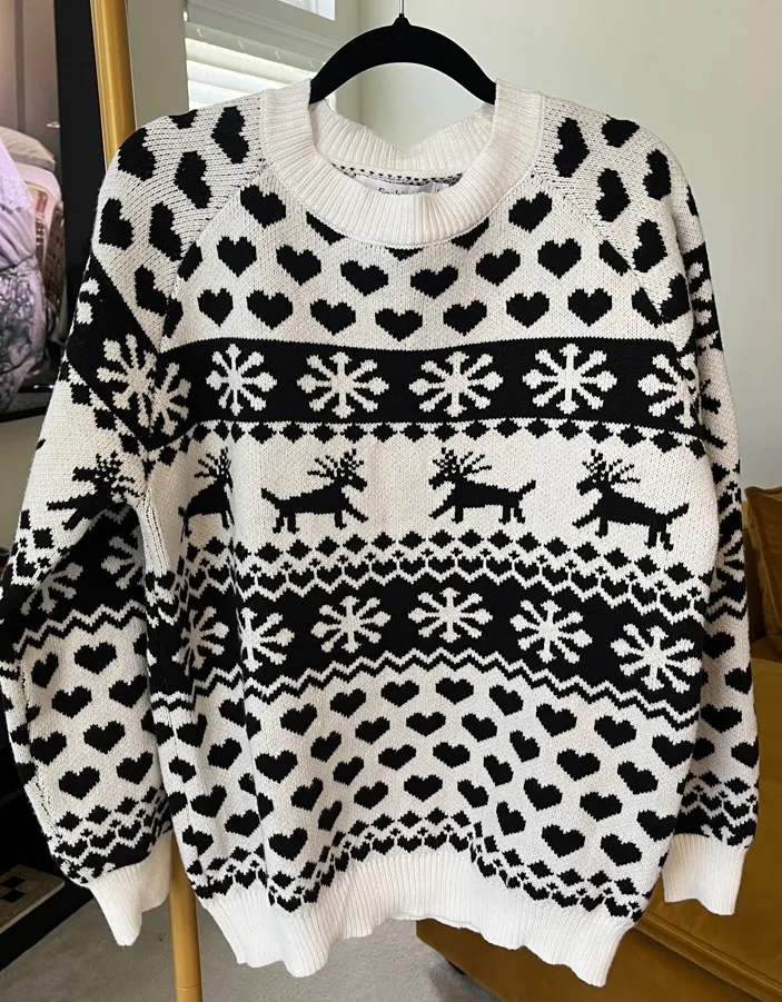 Fashion brand Black and White Heart and Reindeer Sweater size L Size L - $33 - From Marcia