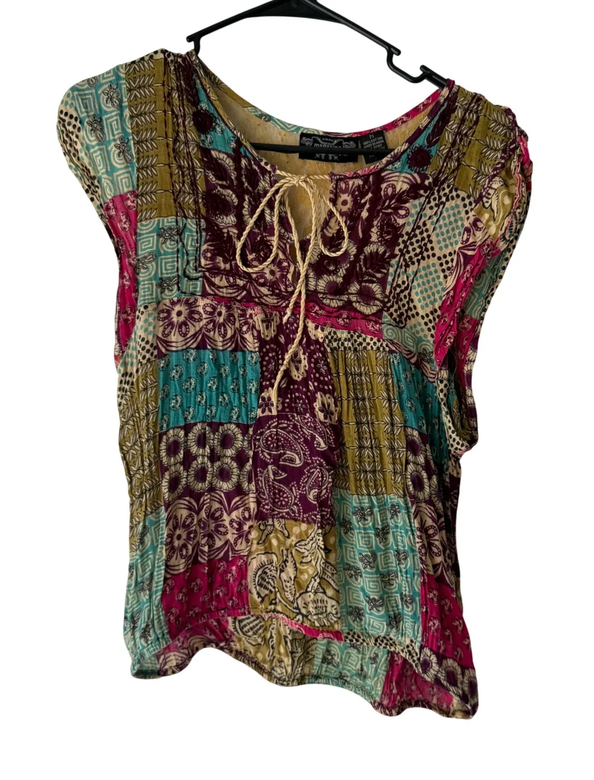 Magazine Y2k Patchwork Bohemian Top Multicolor Blouse Tie Neck Medium Festival Type: Blouse Departm... Show more