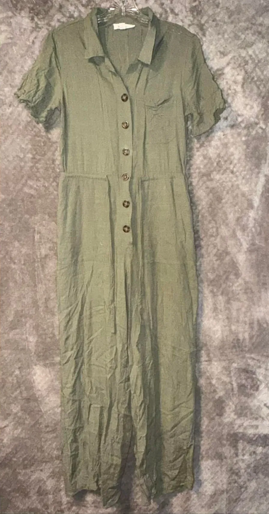 Fashion on Earth Army Green Collared Straight Leg Jumpsuit Elastic Waist Small - $24 - From Melissa