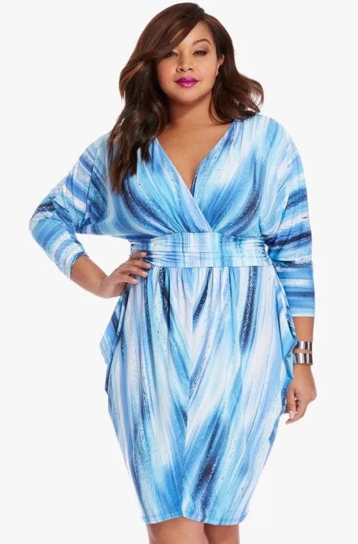 Gorgeous Fashion to Figure Blue and White Brushstroke Dress Pattern Dress. Has an Asymmetrical Heml... Show more