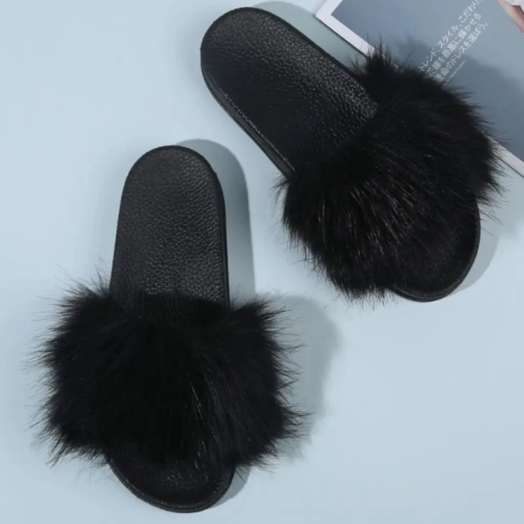 Rubber sole Platform measures approximately 1.00" (runs small round one size up for comfort when placing your order) COMFY & RELAXING: Made of environmentally friendly materials. The fur slides slippers are lightweight soft comfortable elasticity and extensibility, it can be very easy to carry if you want to take a trip. Sewn on the outside of the fur slippers/slides, so you will not feel hot even in summer