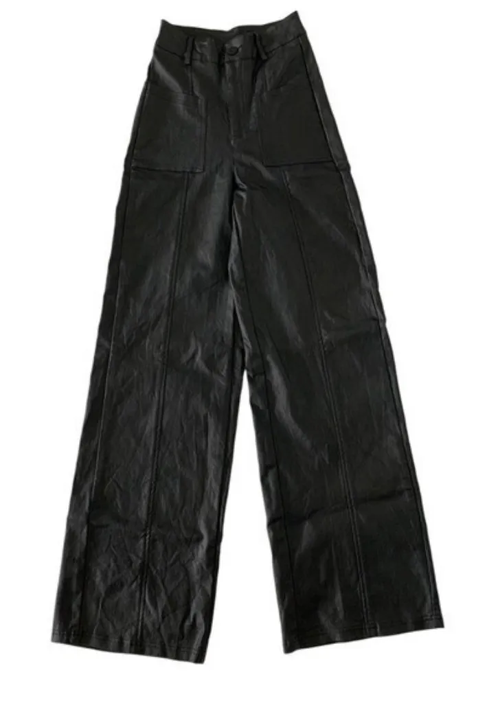Faux Leather Pants Womens XS Black Wide Leg High Rise Stretch Y2K Sexy - $28 - From Rodica