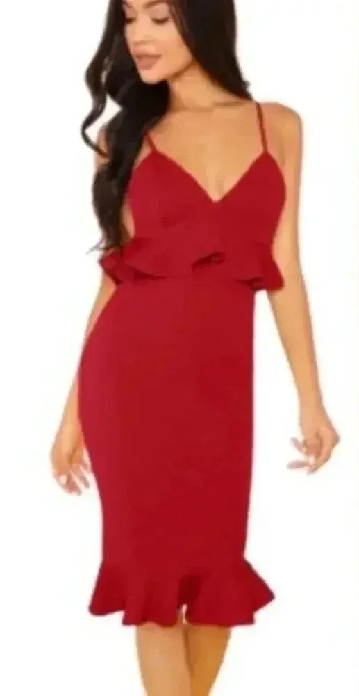 Favlux Fashion Terra Cotta Sexy Sleeveless Bodycon Peplum Ruffle Dress - size medium, new with tags!... Show more