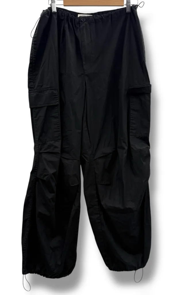 Favorite Daughter Black High Rise Cropped Wide Leg Cargo Pants Designed with a flattering high-rise waist and a cropped wide-leg silhouette, these pants strike the perfect balance between fashion-forward style and all-day comfort. The sleek black color keeps them versatile, while the utility-inspired cargo pockets add a functional, on-trend touch. Made from quality materials with attention to detail, these pants are perfect for dressing up or down. Pair them with a fitted bodysuit and heels for a street-style look, or go casual with a tee and sneakers. The structured shape and elevated design make them a standout choice for everything from weekend wear to creative office outfits. If you're looking to elevate your everyday essentials with a mix of practicality and high-end design, these Favorite Daughter cargo pants are a must-have. The cropped length makes them ideal for showcasing your favorite footwear while maintaining a chic, confident vibe. High rise Cropped length Wide leg Baggy Side pockets and two cargo flap pockets Solid black Adjustable drawcords at hems 100% cotton Size: L Measurements are provided in pictures Condition: Excellent tags: casual workwear, weekend outfit, street style, travel day, brunch with friends, coffee run, urban exploring, casual Friday, everyday wear, errands outfit, fashion-forward look, capsule wardrobe, transitional season outfit, laid-back chic, relaxed office look, comfortable style, day-to-night outfit, trendy casual, minimalist