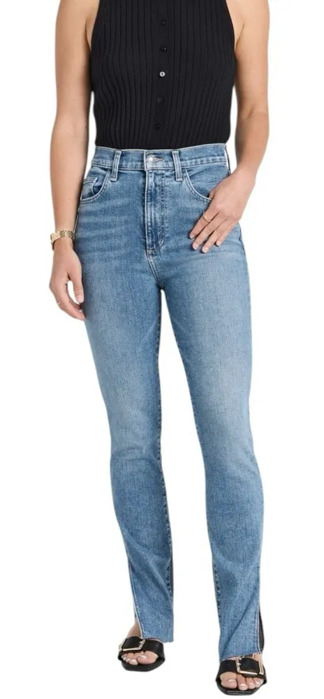 Brand new with tags — never worn, only displayed in a retail environment. The Petite Valentina Shortie by Favorite Daughter features a super high-rise fit and straight cigarette leg with split cuffs and a raw hem. Crafted from soft stretch denim in the Laurel wash for comfort and shape retention. Size: 24 Color: Laurel Details: Super high rise, straight-cut silhouette Split cuffs with raw hem Mid-weight stretch denim Button closure and zip fly Five-pocket styling Fabric: 95% cotton / 3% elasterell-p / 2% elastane Machine wash cold Approximate Measurements: Waist 12.5" Front Rise 11.25" Inseam 29.25"