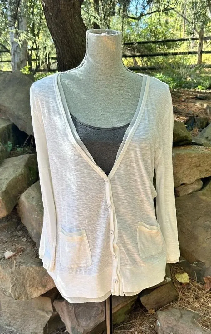 Large Vintage Eddie Bauer cotton 3/4 sleeve cardigan Cardigan has two front pockets V neck line B... Show more