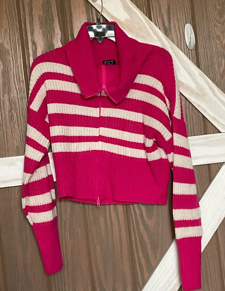 FCT With Love Striped Pink & White CroppeSweater. Zip Up. P2P 20-24” SIZE MEDIUM - $11 - From Linda