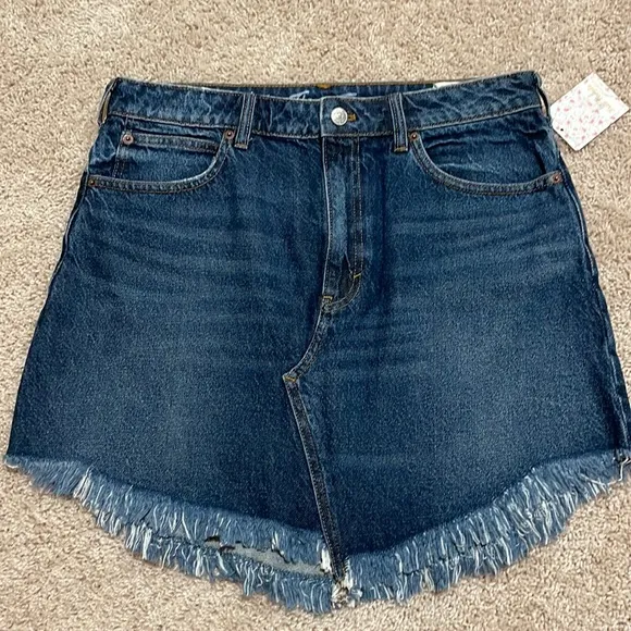 Size- 31 New with tags! No Flaws! High rise denim mini skirt, not too short! Washed denim mini skir... Show more