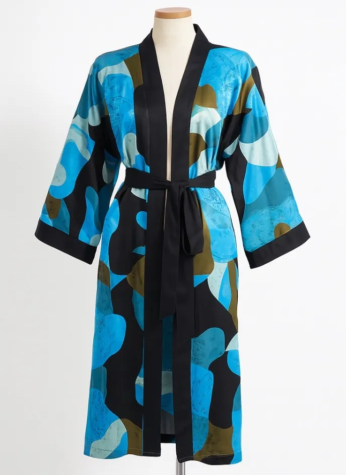 FE Noel x Target Kimono Swim Cover Up Womens Small Blue Abstract Resort Wear Women's Size: Small De... Show more