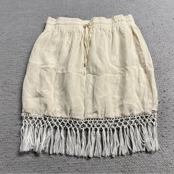 ⭐️ Amour Vert Cream Ivory elastic Waistband Tassel Fringe Skirt Size Small - $16 - From Sophia