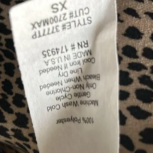 New with Tags - Evereve’s Allison Joy Long Sleeve V-Neck Animal Print Ruffle Collar Blouse Black and tan print, the tan is darker than it appears in photos. Measurements approximately: Tag size XS Pit to pit 19” Collar to hem 23” Collar to cuff 28” Bundle all your likes for greater discounts. Happy to consider your offer or counteroffer. Closet Clear Out Days are a great time to cash in on discounted shipping for your purchase! Due to lighting item’s color may vary slightly from pictures. Thanks for checking out my listing.