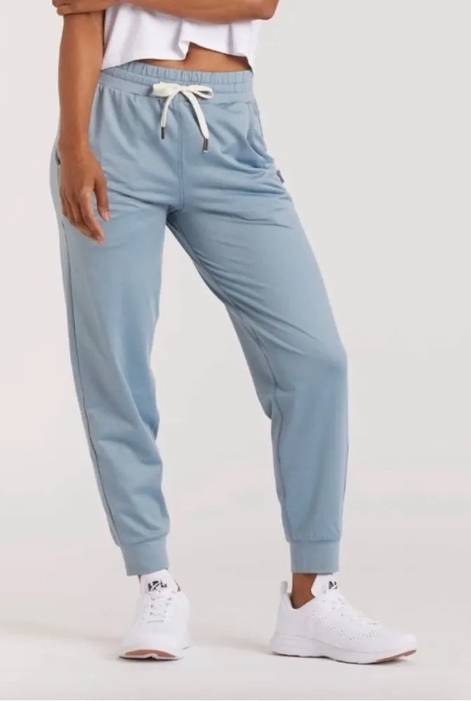 Size: XS Color: Aqua blue (most accurate color is in my pictures not the stock photo) Measurements: Approximate Waist: 12” Hips: 17.5” Rise: 11.5” Inseam: 23.5” Details: Made with our signature lightweight Roam fabric, these joggers are designed to perfectly balance comfort & versatility. Secure accessories zippered back pocket Side pockets Drawstring waist with signature metal tip Feat laces Moisture wicking + 4-way stretch High waisted + 7/8 length + jogger cuff Buttery soft 90% polyester/ 10% spandex In excellent pre-owned condition! About Nineteen Daisies: Smoke free home. Same or next day shipping. Shop with confidence over 400+ 5 star ratings New items added daily! Athletic, sporty, retrosport, gym, workout, technical, performance, gorpcore, activewear, utility, practical, cargo, organic, natural, granola girl, hiking, camping, outdoor, running, jogging, walking, cycling, bicycling, peloton, weight lifting, yoga, trail, pilates, Athleisure, lounge, soft, relaxed, casual, around the house, jersey knit, comfy, comfortable, cozy, stretchy, stretch,