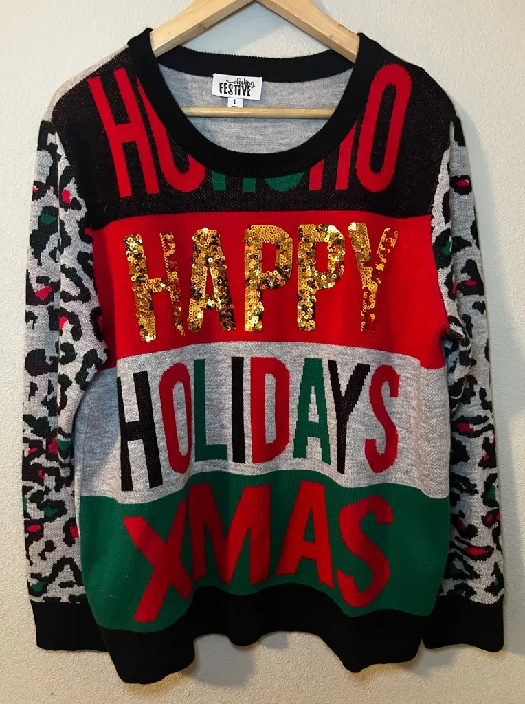 Feeling Festive Christmas Sweater Sze L w/Festive Sequins Holiday Office Party Size L - $22 - From Carmen