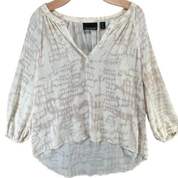 Cynthia Rowley Blouse Womens Size L Cream Abstract 3/4 Sleeve Peasant Hi Low Excellent pre-owned co... Show more
