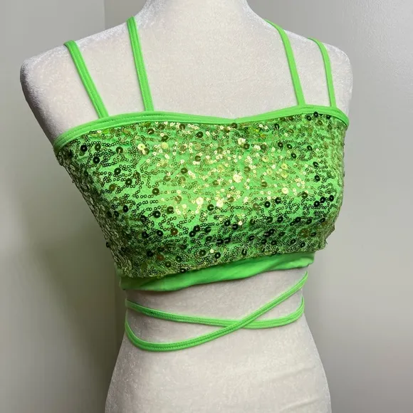 Ferreira Dance Sequin Crop Top w/ Tie Strap Detail Size Small Adult Green - $20 - From Melanie