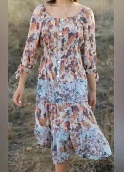 Fig and flower anthropology woman’s dress, Preowned conditions still in great shape no original package. Size Xl Multi color Elegant floral dress with long sleeves and tie cuffs. Features a blend of colors for a stylish look.