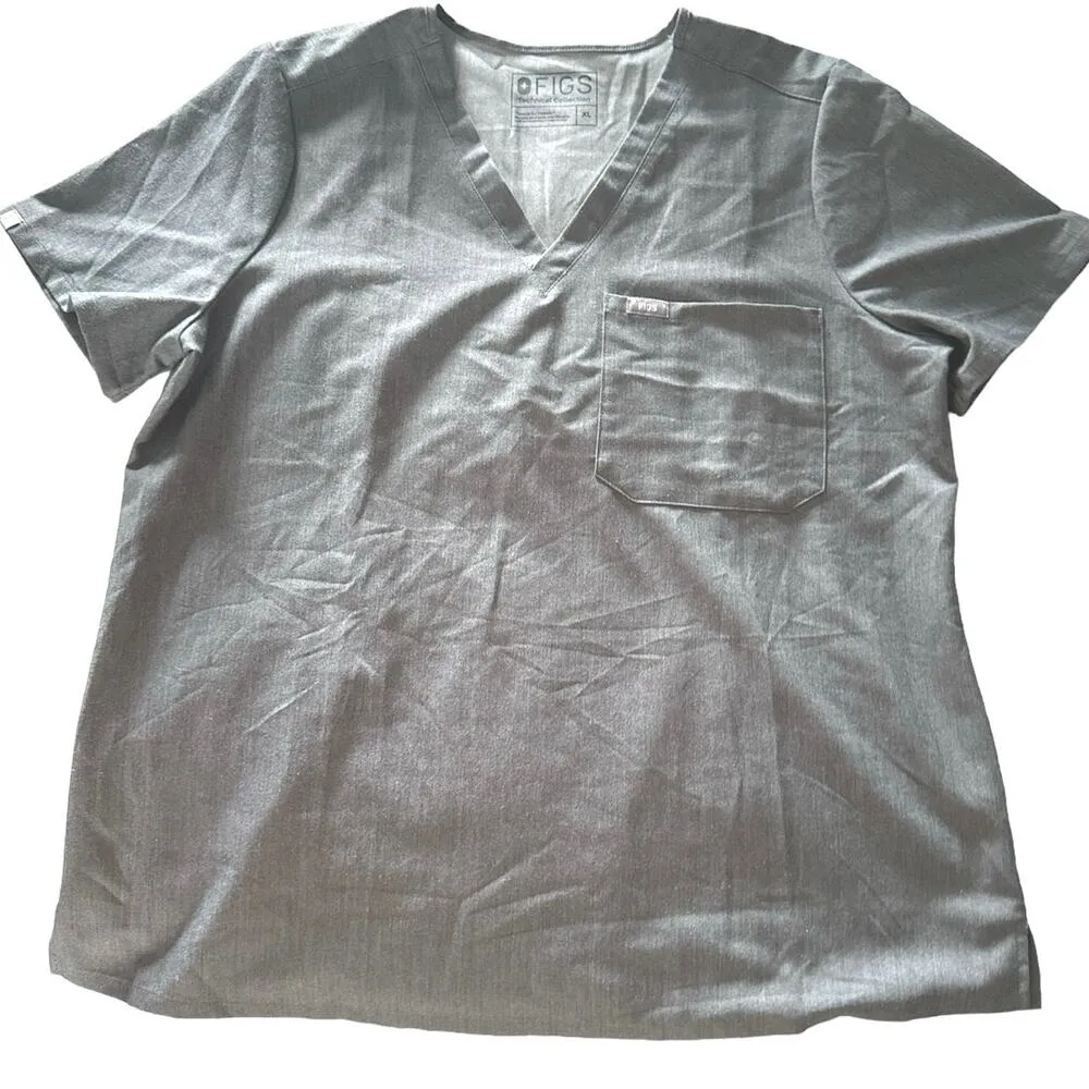 FIGS Catarina 1 Chest Pocket Scrub Top Charcoal Gray V-Neck Back Darts Womens XL In excellent like... Show more
