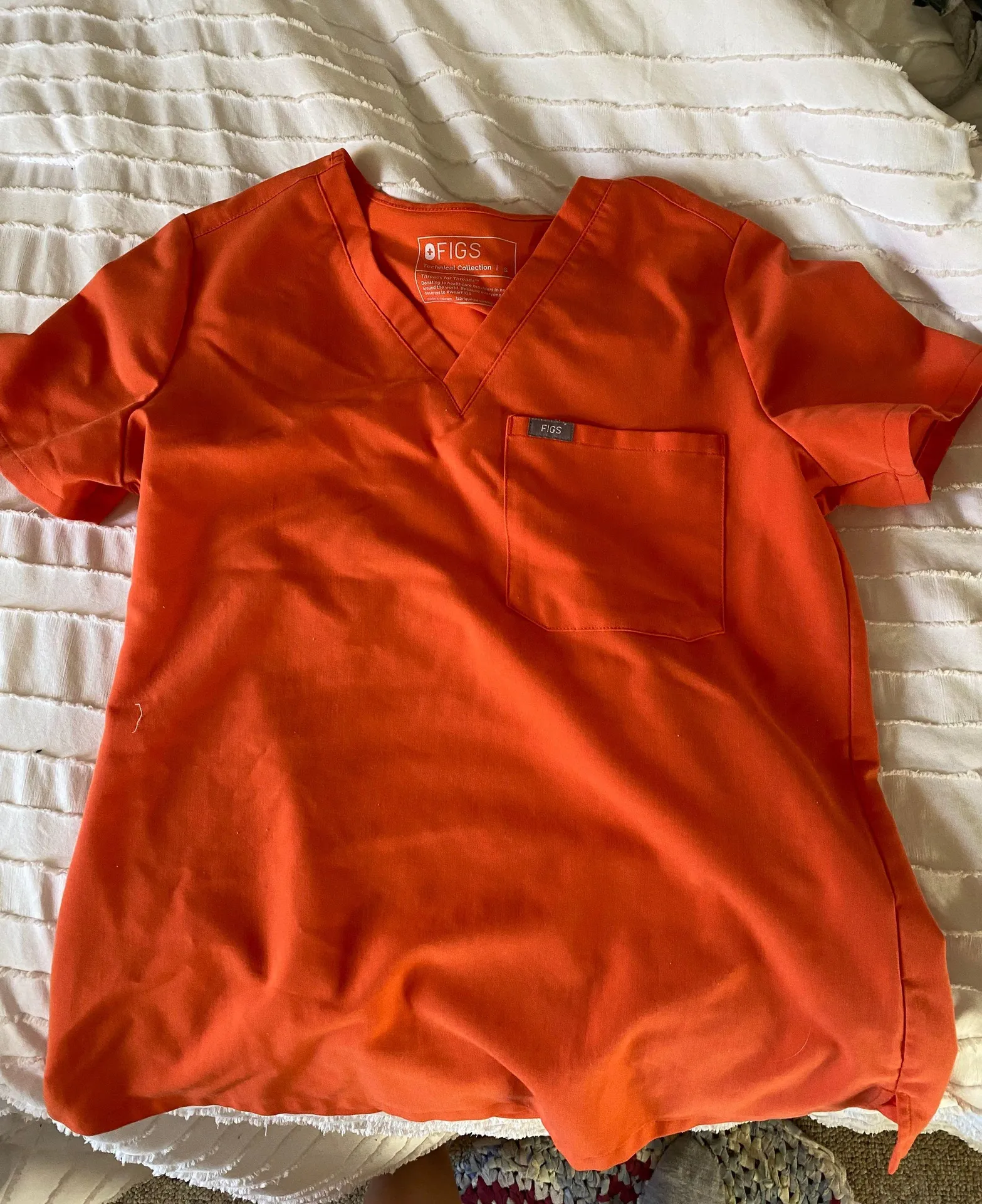 sunset orange scrub set, top is a small and bottoms are an xs. hardly worn, perfect condition!