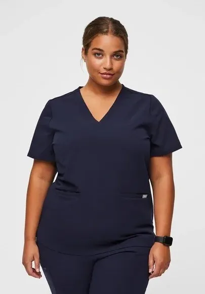 FIGS Scrubs top shirt short sleeve navy vneck pockets Casma plus size curve Blue - $20 - From Filo