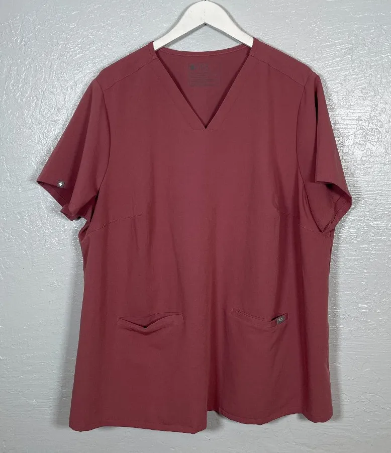 Figs Women Plus Size 4XL Dusty Rose Pink Casma Scrub Top Shirt Three Pocket, short sleeve, v-nec... Show more