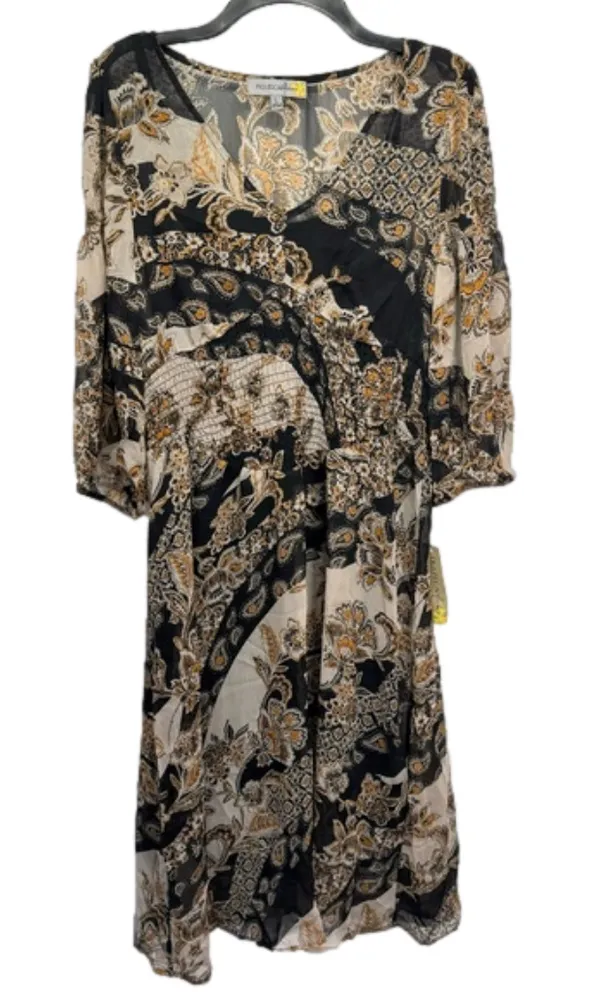 Fig & Flower black and brown boho floral and paisley print sheer overlay midi dress with shirred high waist. Black slip liner, sheer puff 3/4 sleeves, V neckline. Women’s size large. Brand new with tags! Clean, smoke free home and studio. Five star seller. Super fast shipping! Measurements 21” armpit to armpit 46” length *measurements are approximate SKU# 245212 21